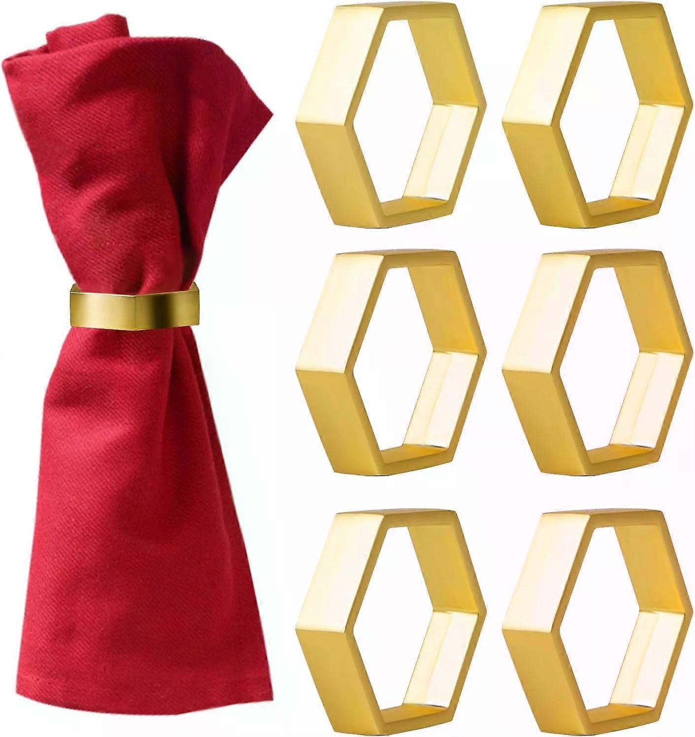 Set of 6 Gold Napkin Rings, Hexagonal Buckles, Metal Holders for Dinner Party, Table Decor