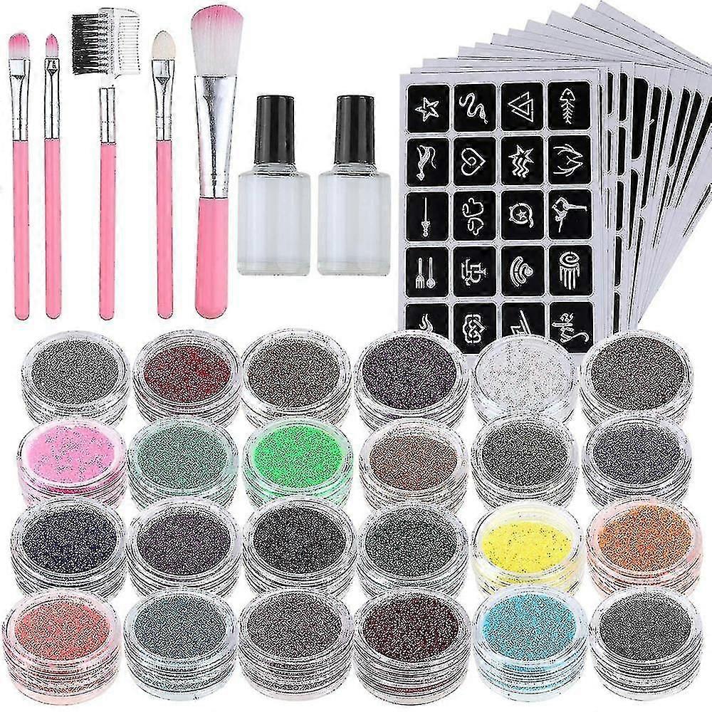 Glitter Tattoo Set - 24glitter Tubes &125 Stencils &2glue &5 Brushes