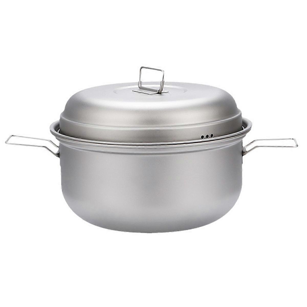Titanium Camping Soup Pot Set Outdoor Light Steamer with Steam Compartment