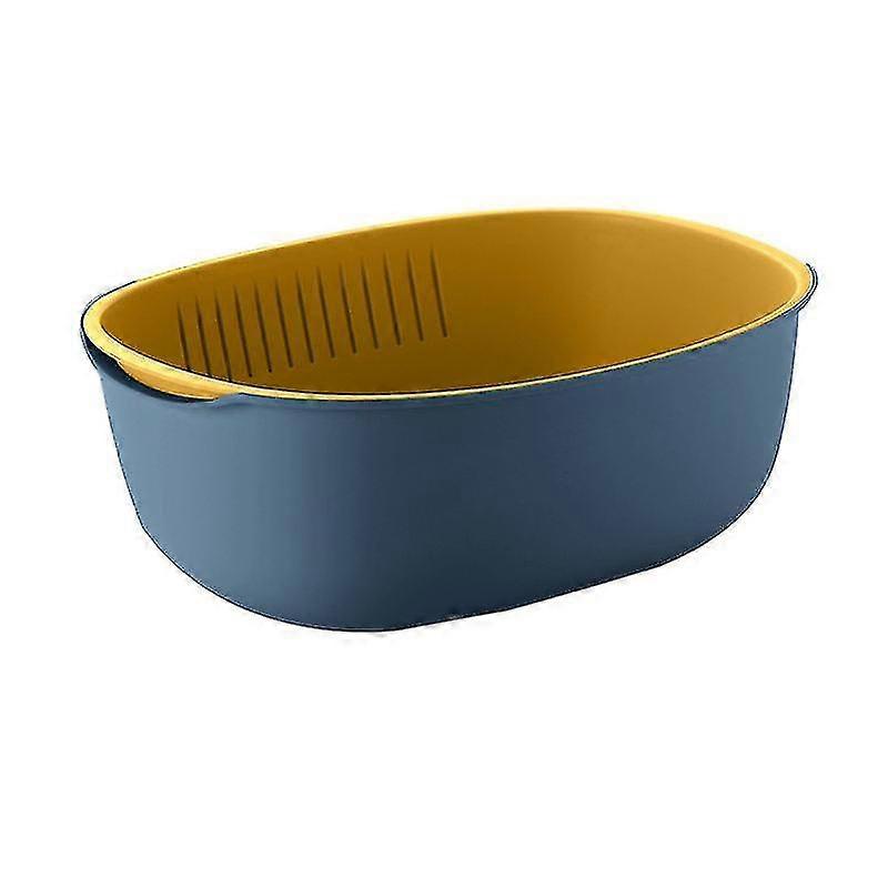 [2-in-1Multifunctional Strainer]- & food strainers plastic , filter holes can filter water to keep fruits or vegetables washed. . [colander 5 quart plastic]- This product is very suitable for fruits and vegetables stored on the kitchen counter or on the dining table. You can also use it as a banana bowl, bread basket, snack bowl and egg storage solution, as well as a kitchen basket for cakes, biscuits, etc. . [ Colander Washing Bowl Set Fashionable Design ]-Double-layer kitchen colander combo set, blue colander and yellow bowl, two soothing and lovely colors add fun and beauty to your kitchen decoration and food preparation.