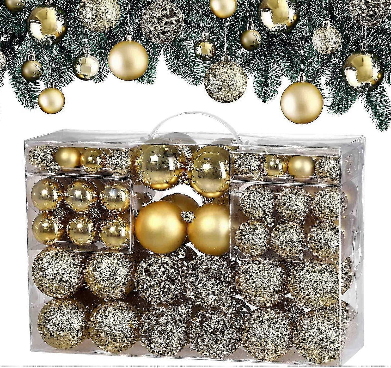 100Pcs Christmas Tree Baubles Set | Xmas Decorations Balls With Hooks | 32x 30mm 36x 40mm 32x 60mm | Gold