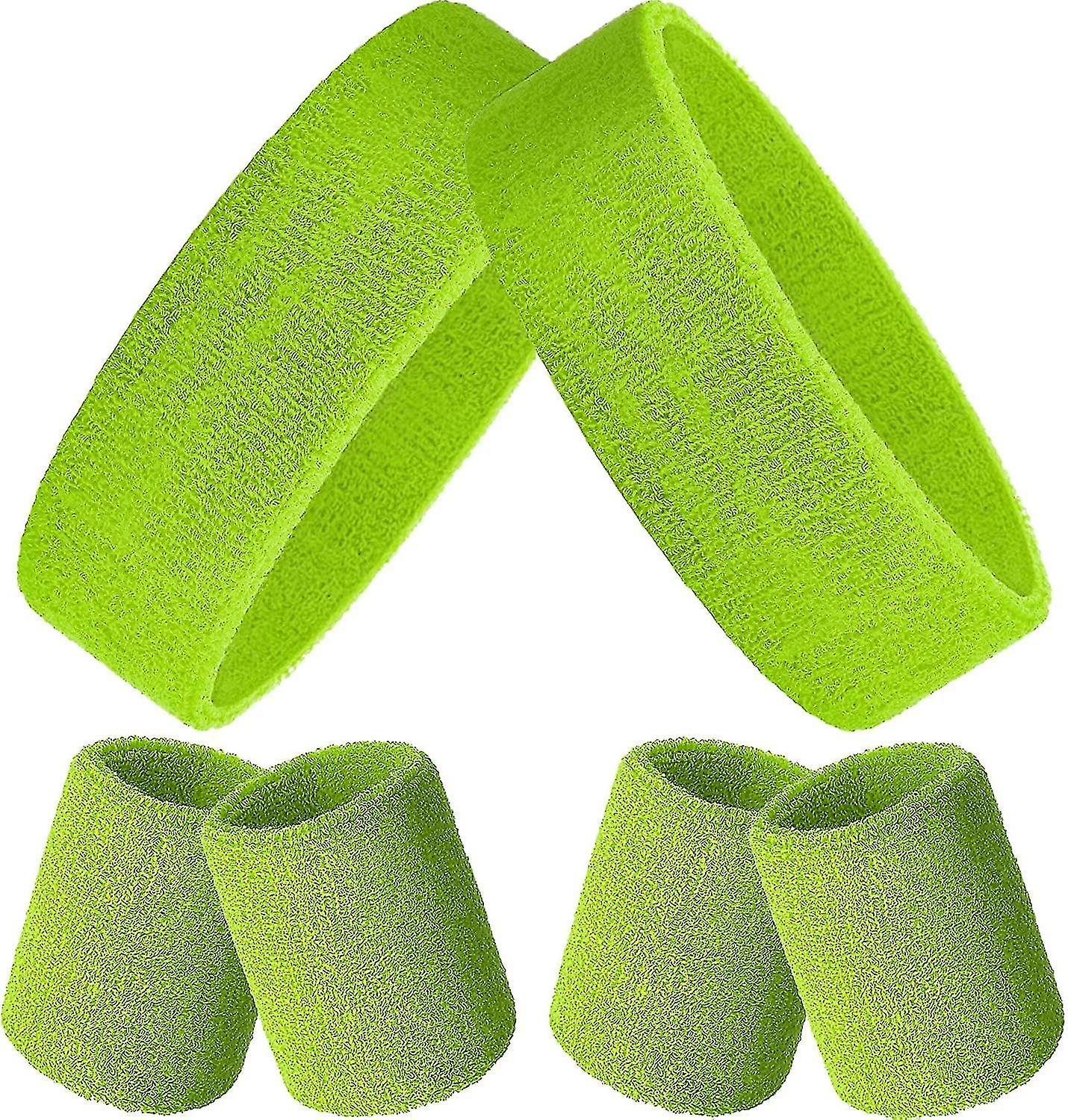 6 Pieces Striped Sweatbands Set. Includes 2 Pieces Sports Headband And 4 Pieces Wristbands 5color