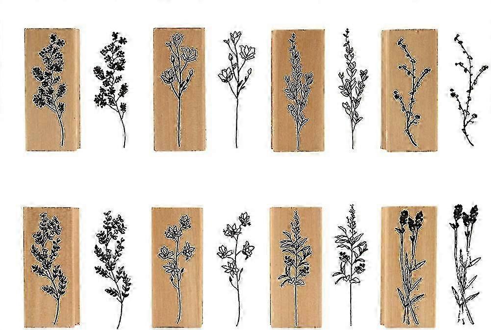 Plant Wood Stamps. 8 Pcs Rubber Wood Stamps. Natural Rubber Stamp. Scrapbooking