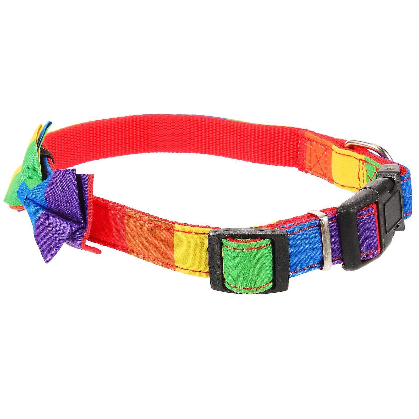Made of Fabric material, the cat collar is safe for your pets, breathable and sink-friendly, and durable to use. The cat collar has an adjustable design, which make it suitable for most of the cats or some small puppies. Designed with a safety buckle that can be opened and easily and directly, easy to put on and take off, very convenient. Features - Color:Assorted Color - Material:Fabric - Size: 13.00X13.00X4.00cm/5.11X5.11X1.57in -Note:Collar adjustment range 29-40cm. - The adorable rainbow pattern style collar is a good your cat or a your good friends who have a pet. - Adorable cat collar make your cat lovely in various parties, and can match well with your other pet outfit. - Adjustable design, gives your pet maximum comfort without hurting it, comfortable to wear. - Designed with rainbow pattern, the collar can make it easier for you to find your cat or dog, conveniently. - Chic rainbow pattern design, make your pet stand out from the crowd, easily catch people's attention. Package list: 1 x Small Dog Collar