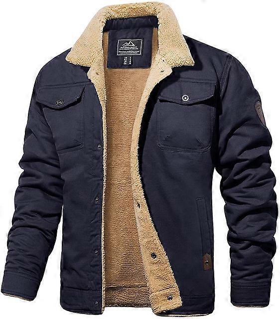 Turn-down Collar Winter Cotton Jackets Mens Sherpa Fleece Trucker Parka Green Tactical Cargo Coats Clothes Overcoats