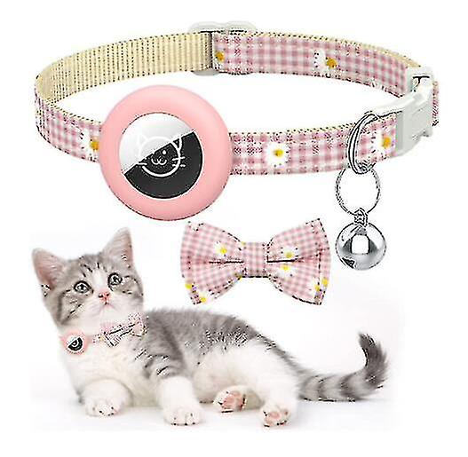 Airtag Cat Collar With Cute Fllower Bow Tie And Airtag Holder And Bell