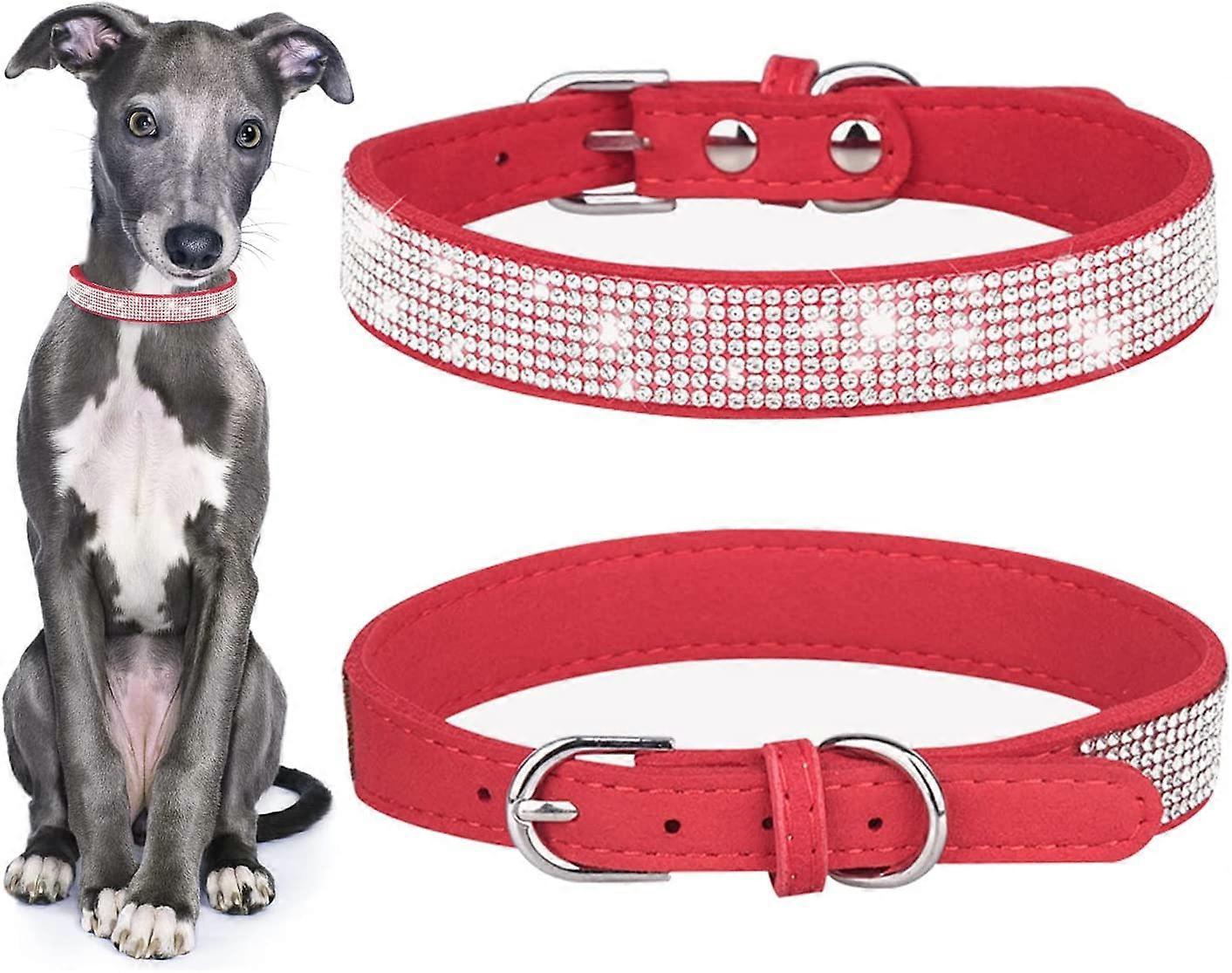 Adjustable Size-- The total length of this red dog collar is 30 cm/12 inches, the width is 1.5 cm/0.6 inches, the neck can be adjusted from 21 to 27 cm/8.3 inches to 10.6 inches, very flexible, Please measure your pet for selection. Three sizes are available (default XS): XS/S/M, please note if you need other sizes Cute and Fashionable--There are shiny rhinestones on the surface of the pet collar, it looks very bright and shiny, easy to attract eyes, the pink style is very suitable for decorating your puppy and cat, making them more cute, beautiful and fashionable. Comfortable and Durable-- The puppy collar is made of soft suede, flexible and comfortable to the touch, with good wear resistance and tensile resistance. Easy to Use-- The puppy collar is designed with alloy buckle clip and D-ring, anti-rust, smooth and durable, easy to adjust and fix. Warm Reminder-- When using this cat collar, please be sure to leave 2 fingers between the collar and the dog's neck, so as to leave a comfortable chewing space for your dog
