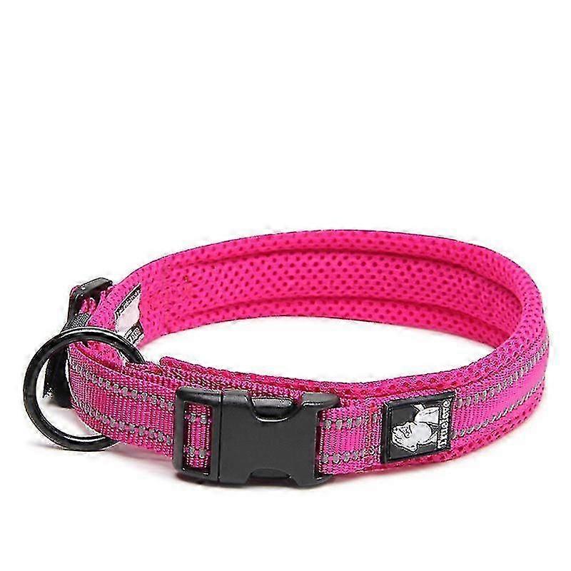 Dog Collar Adjustable Nylon Dog Collar Breathable Reflective Collar (rose)