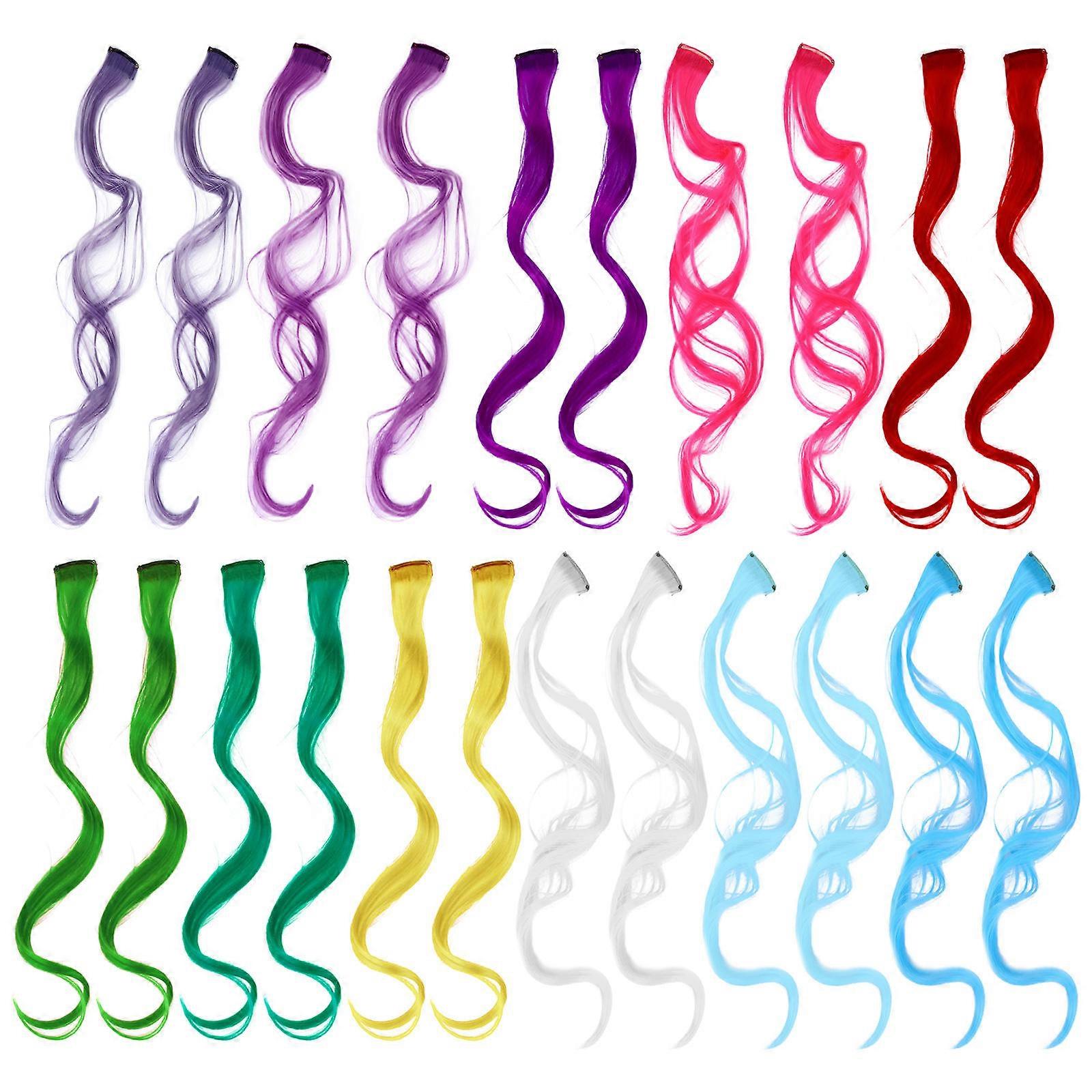 Long Hair Clip Curly Wavy Hair Extensions for Decoration 22Pcs Mixed Color