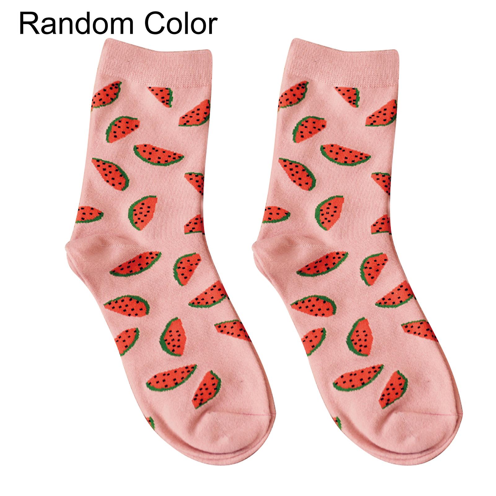 Casual Women Winter Cotton Fruit Watermelon Printing Breathable Long Socks