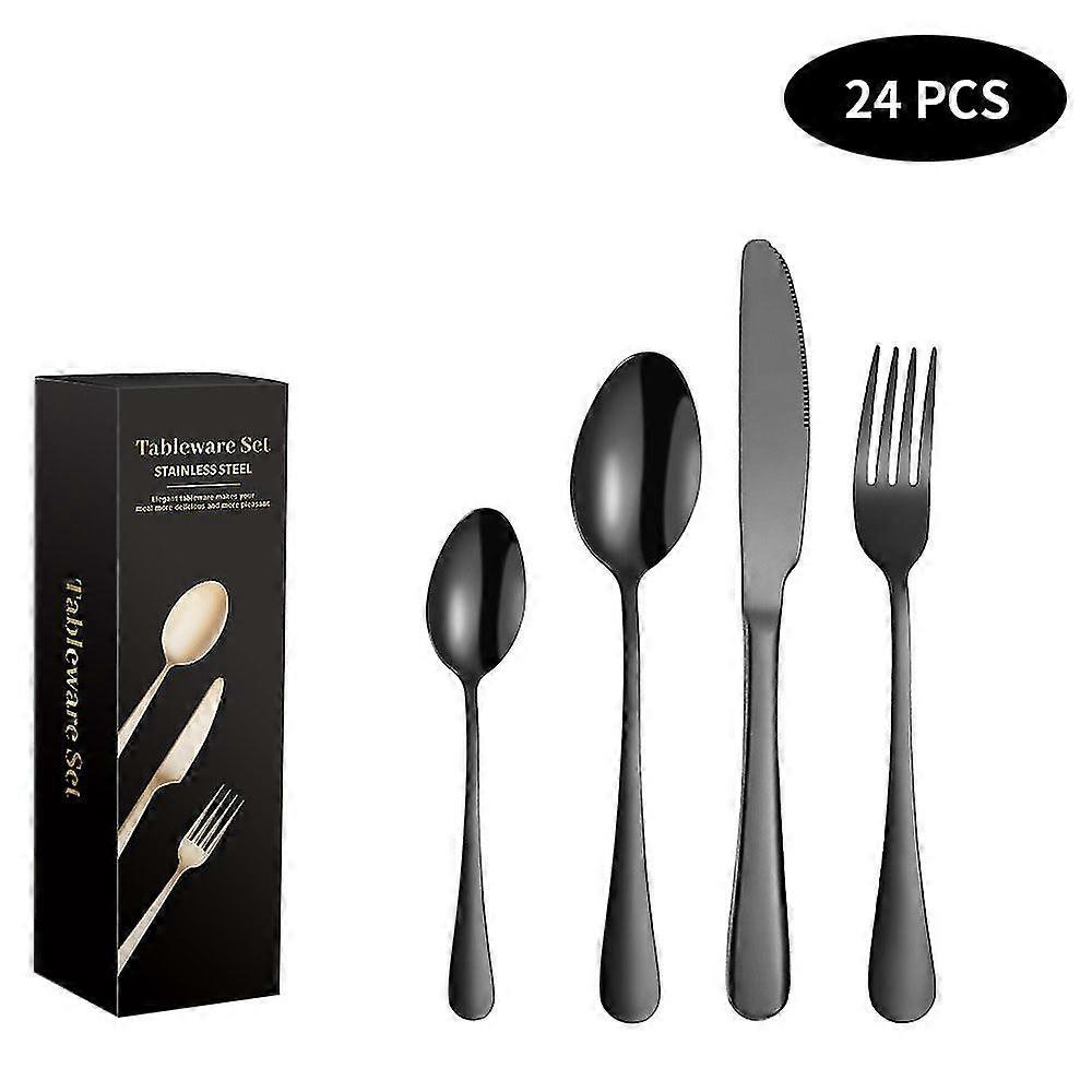 High Quality Matte Black Stainless Steel 24 Piece Cutlery Set, Fork, Knife, Spoon Cutlery Set