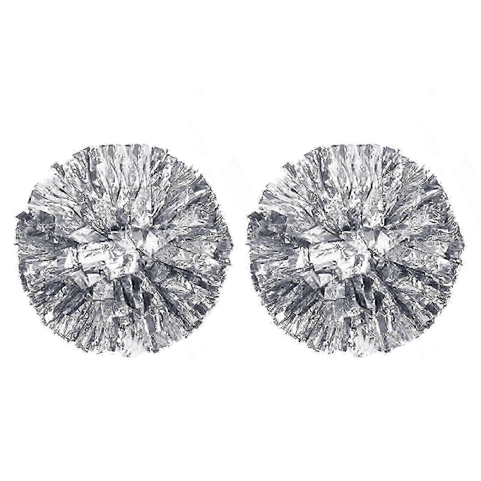 2 Pack Metallic Cheerleading Pom Pom Cheerleader Cheering Squad Pompoms Dance Cheer Plastic Pom Poms(Silver)