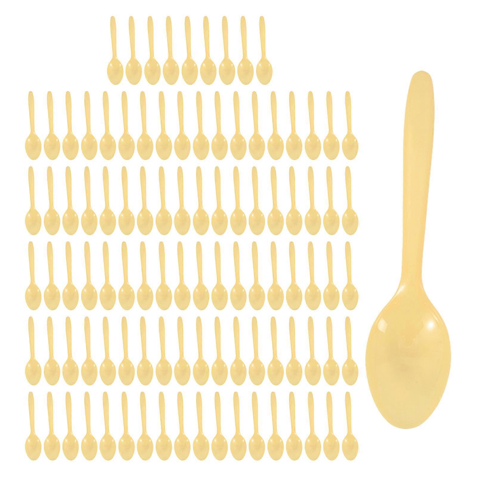 Pack Of 100 Clear Plastic Teaspoons Microwave Safe Round Head Ice Cream Spoon Tableware for Parties Camping and Event Yellow