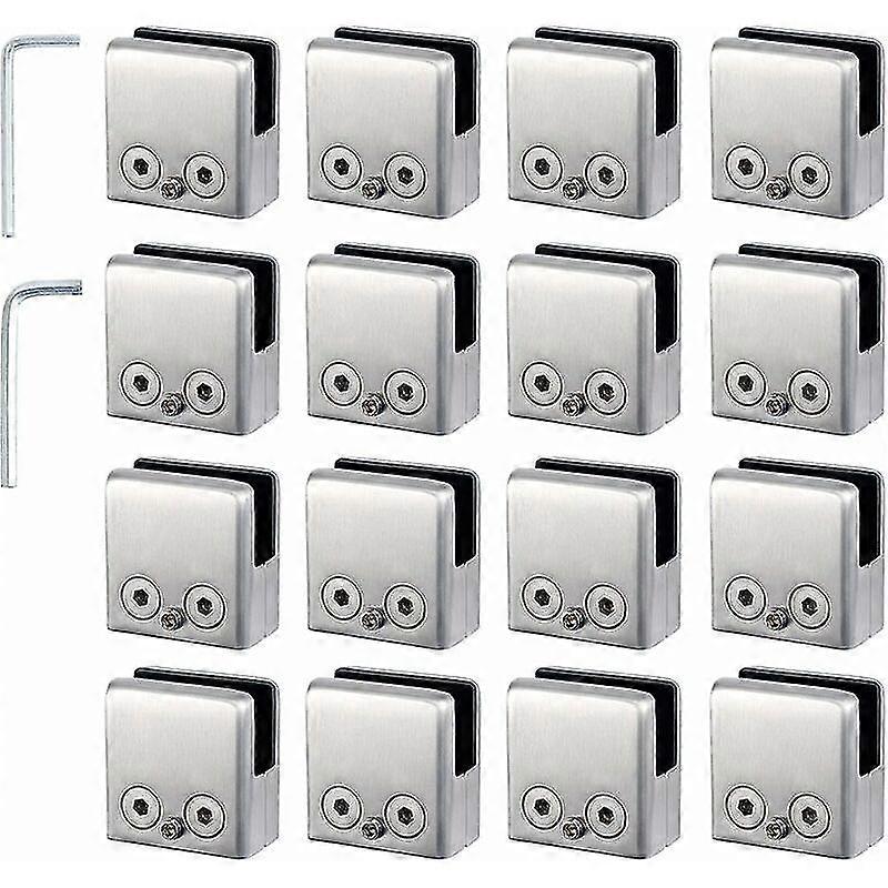 16 Pack 304 Stainless Steel Glass Clamps -square Glass Clamp -adjustable Flat Glass Clamp For Stair