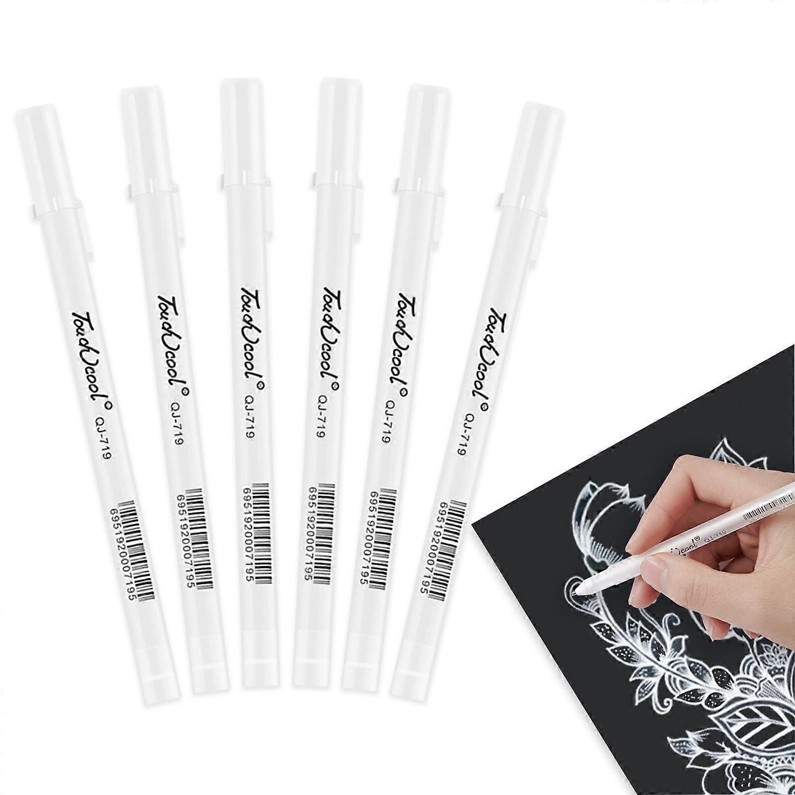 Pack of 6 White Gel Pens for Highlights, Waterproof Marker Pens, White Hand Lettering Pens for Black Paper, Scrapbooking, Drawings