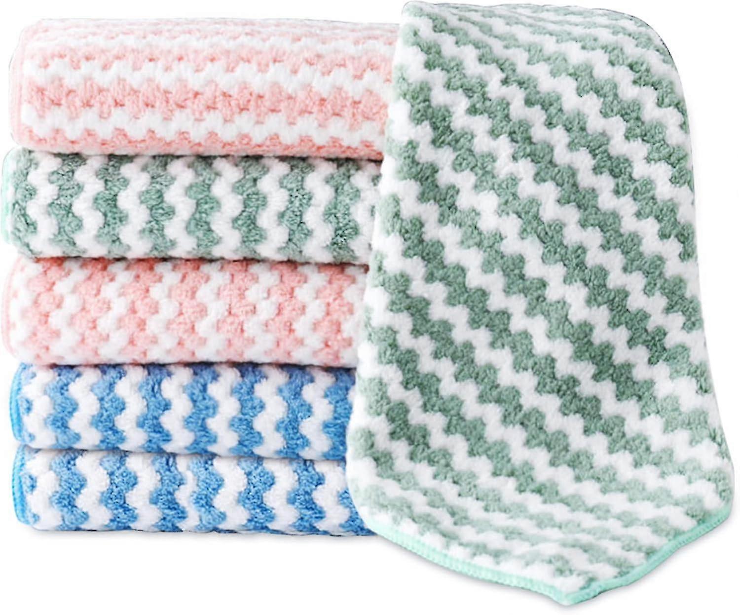 About this item [Package Content] 6pcs microfiber cleaning towels: 2 blue + 2 pink + 2 green; Size: 25 x 25 cm/9.8 x 9.8 inch; Extra dry towel, soft, absorbent, no water stains or streaks, no lint, everything glitters. MaterialThe fabric is made of soft coral velvet material, which is water-absorbent, lint-free and streak-free. Machine washable and maintains performance, color and shape after each wash. Good water absorption abilityThe towel has strong absorbency, whether rinsing or cleaning. They absorb liquids perfectly, have excellent wiping properties, are easy to wring out and do not smell. [Strong oil removal ability] The dirt absorption ability is very good, and the oil dirt can be separated by touching water. It is easy to clean and reusable, reducing the consumption of disposable kitchen towels and saving a lot of money. VersatileIn addition to being used as kitchen rags, the cleaning cloths are also suitable for many other tasks, such as window glass cleaning, car towels, hand towels, and are universally applicable.