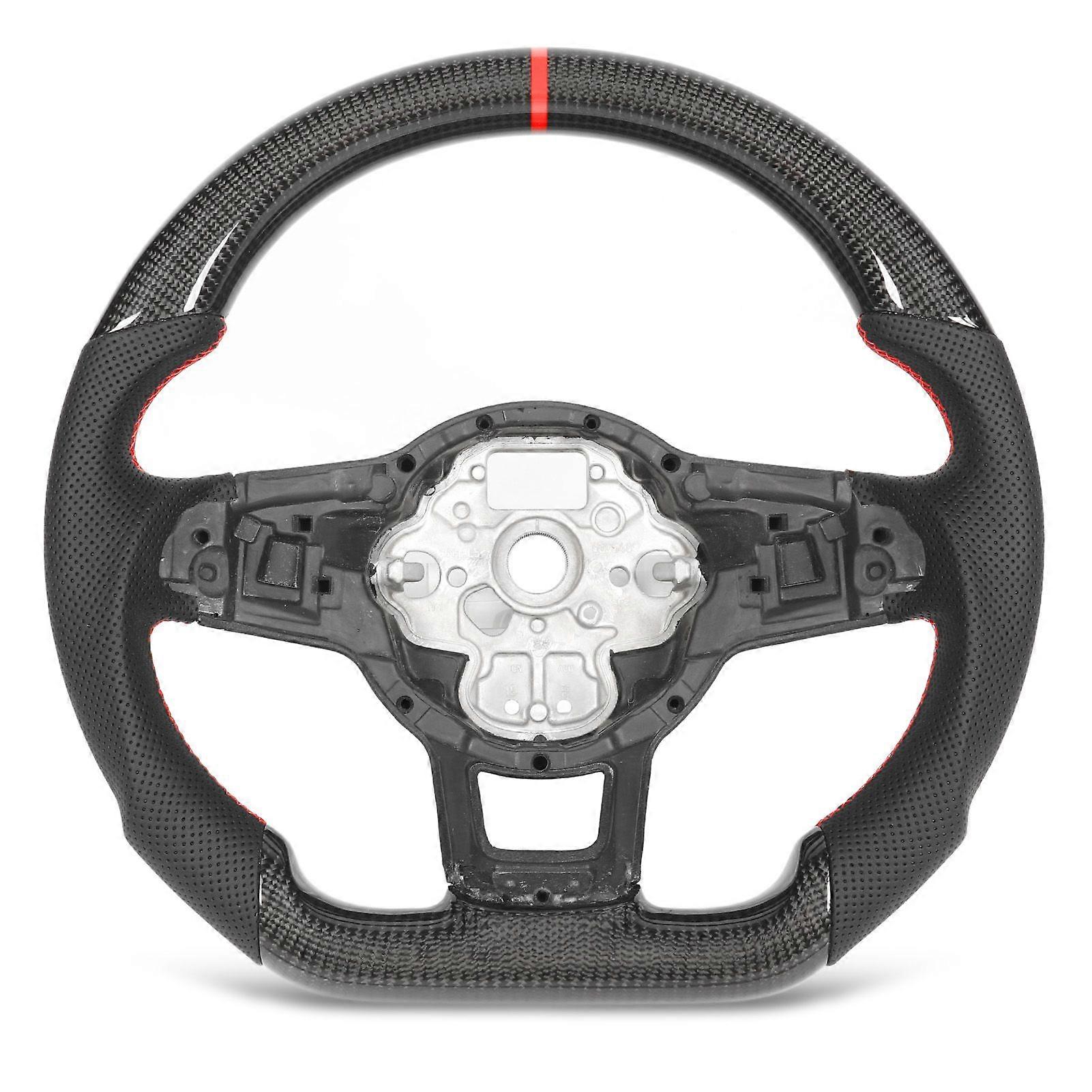 Carbon Fiber Steering Wheel Perforated Leather Non Paddle Shifter Red Stitching for GLI R GTD