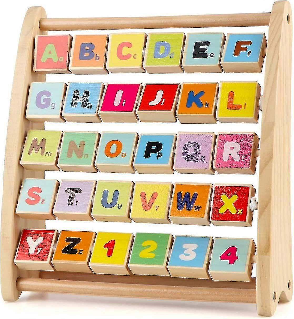 Alphabet Abacus For Toddlers, Wooden Abc-123 Abacus With 30 Letter And Number Tiles, Classic Educational Learning Toys For Baby Boys Girls