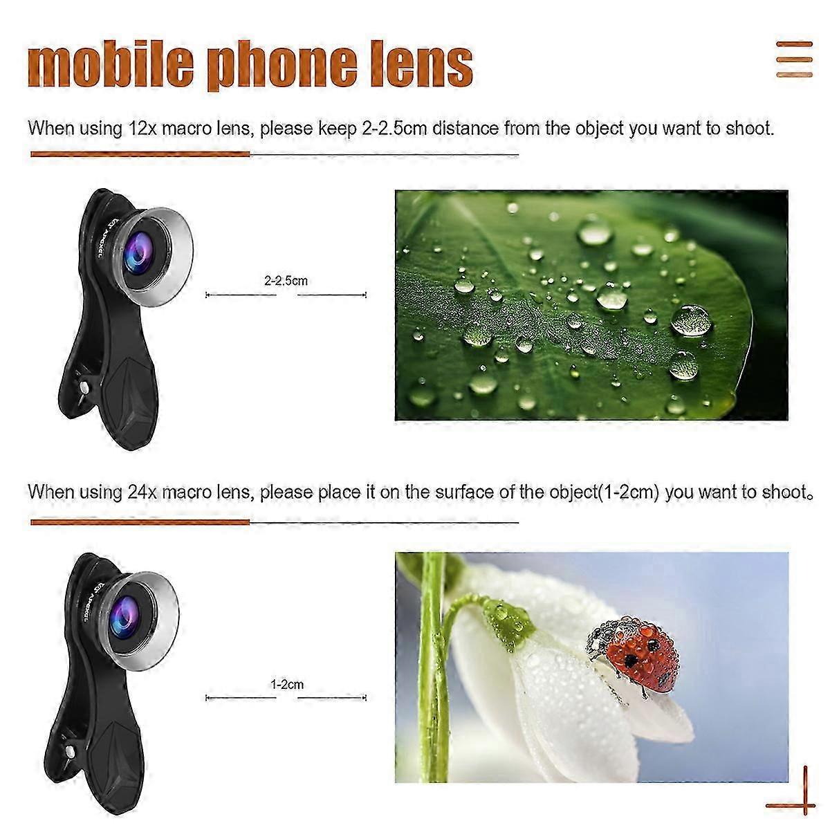 Phone Lens 2 In 1 Clip-On 12 X Macro + 24 X Super Macro Lens Kit For /6S / 6S Plus Ios Android Smar