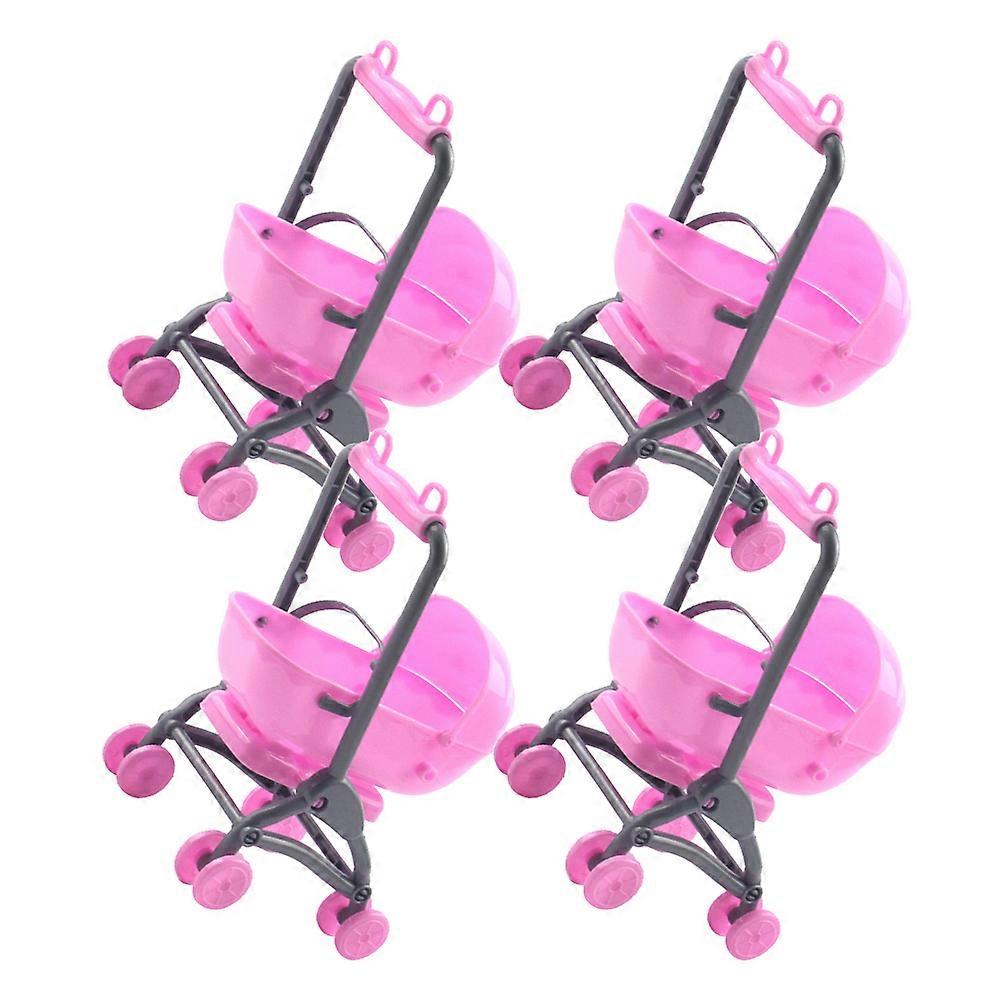 Realistic Baby Play Stroller for Dolls with Pink Plastic Design Ideal for Decor and Role Playing Toys 4pcs