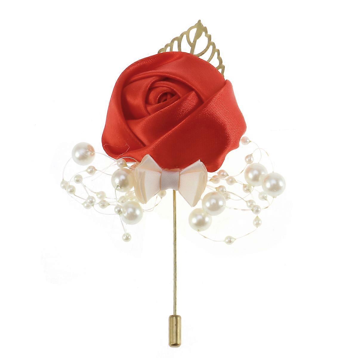 Wedding Boutonniere For Men Red Pearl Brooch Floral Design Rose Shape Banquet Decor 2Pcs