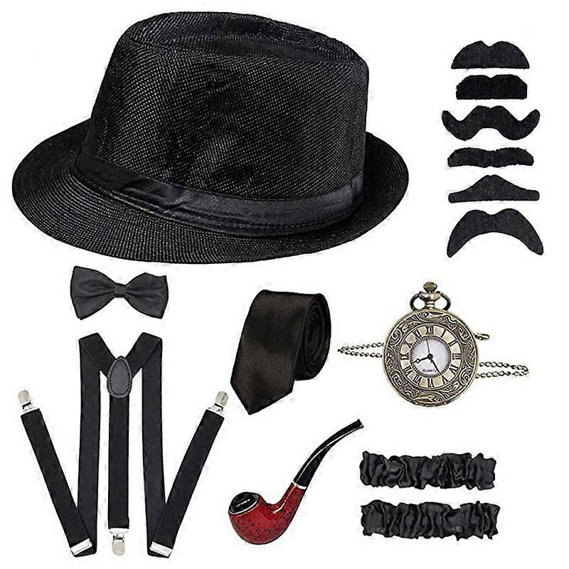 1920s Gangster Halloween Costume Accessories Set Roaring Retro Men's Cosplay