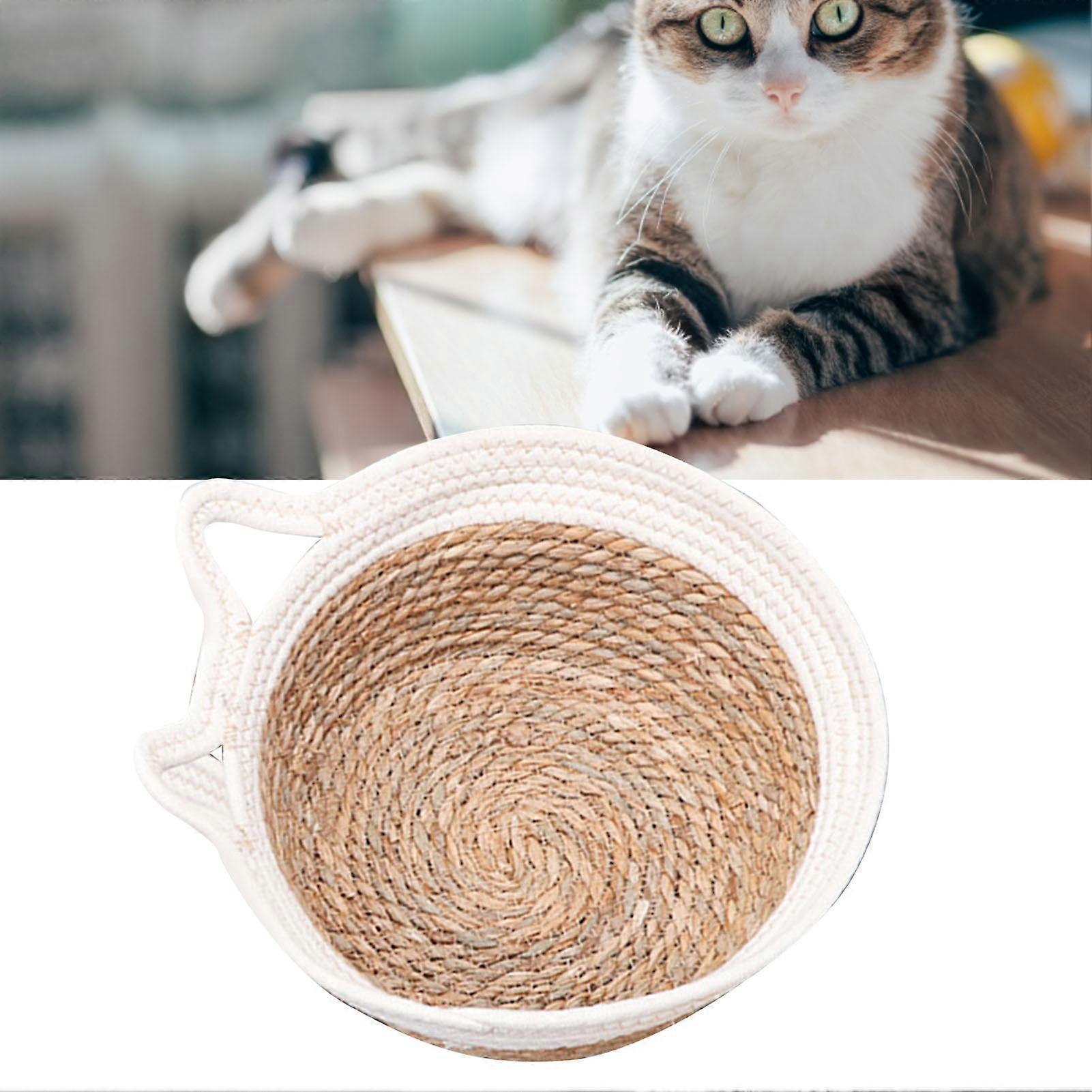 Hand Woven Cotton Rope Cat Nest with Cushion, White, Medium 5kg