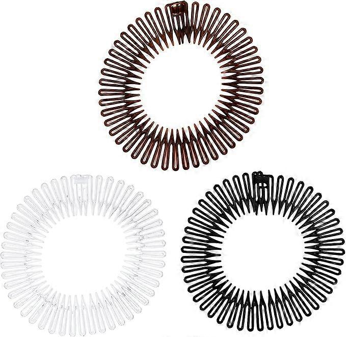 Hair Bands Full Circular Stretch Comb Flexible Plastic Circle Comb Headband Black Clear and Brown(3pcs)