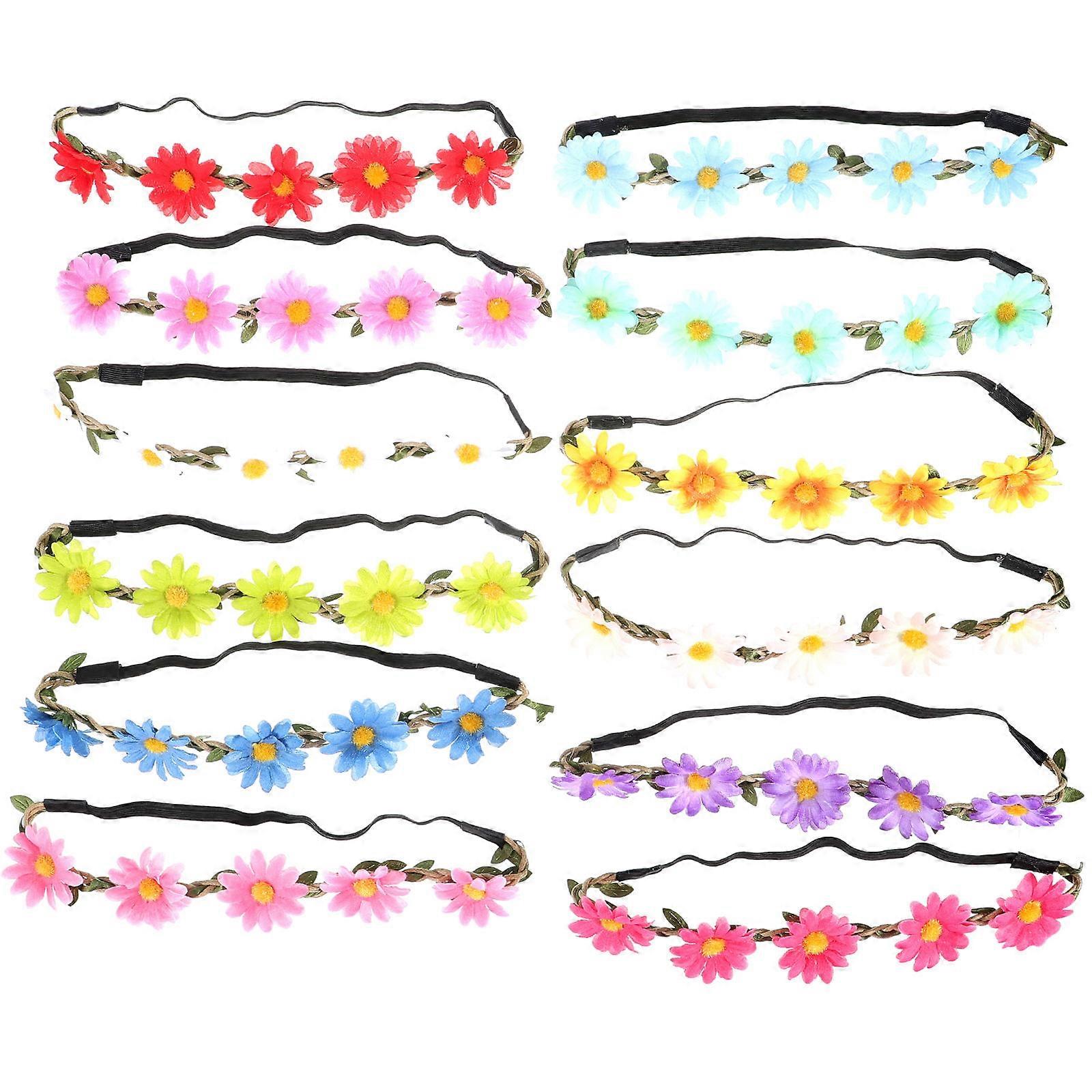 Girls Headbands Daisy Flower Hair Band for Going Out Circular Style Bohemian Accessory 12Pcs