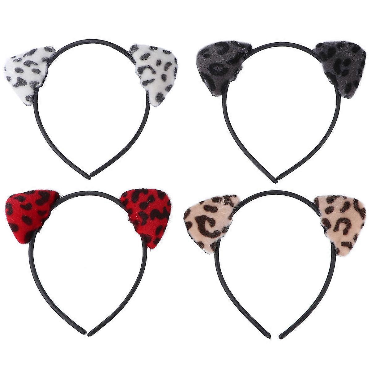 Cat Ear Leopard Print Hairbands Adorable Headbands for Parties and Daily Wear, Comfortable Durable Stylish Hair Hoops Set of 4