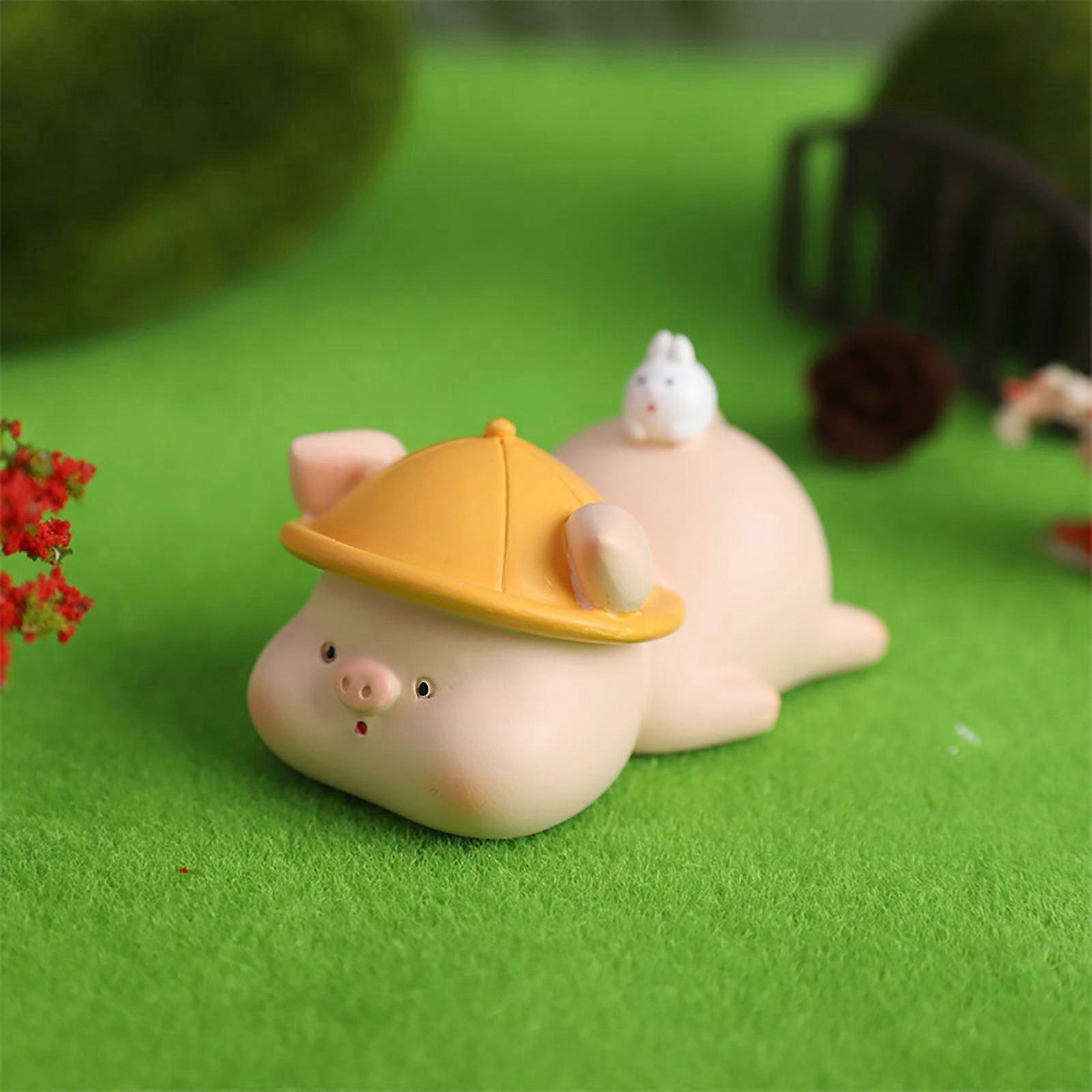 Holiday Ornaments Mini Pig Resin Pig Statue Feng Shui Statue Miniature Cake Top Hat Animal Sculpture Model