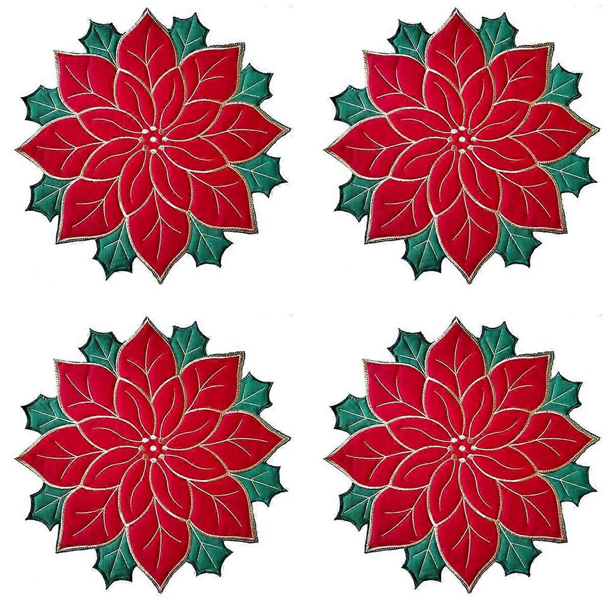Holiday Christmas Embroidered Placemats Applique Poinsettia Placemats Christmas Flower Placemat for
