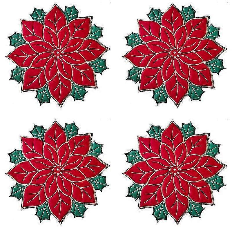 Holiday Christmas Embroidered Placemats Applique Poinsettia Placemats Christmas Flower Placemat for