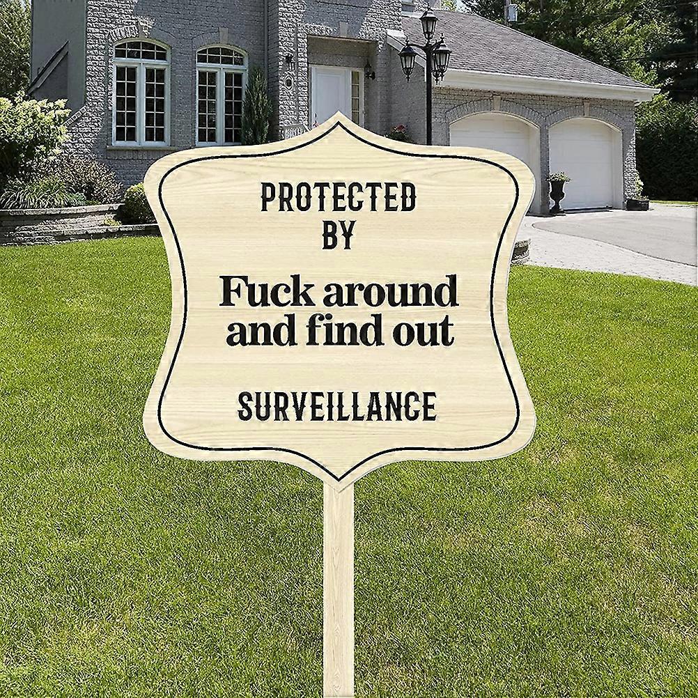 Safety Warning Sign 25x25cm Wood with 30cm Stake Outdoor Yard