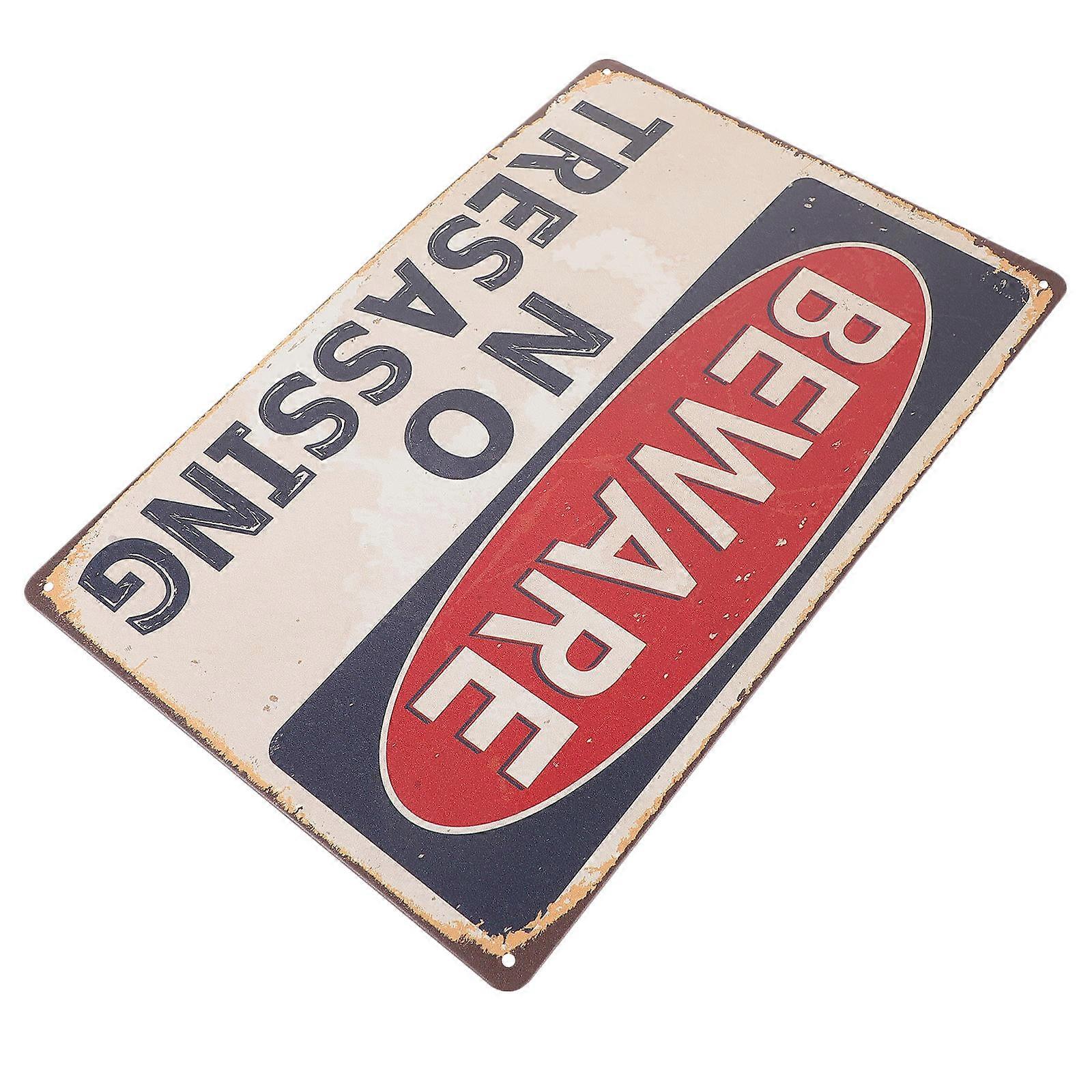 Iron Warning Sign for Yard Garden Decorative Paintings with Classic Colors Multi 4.7 x 6.3 Inches