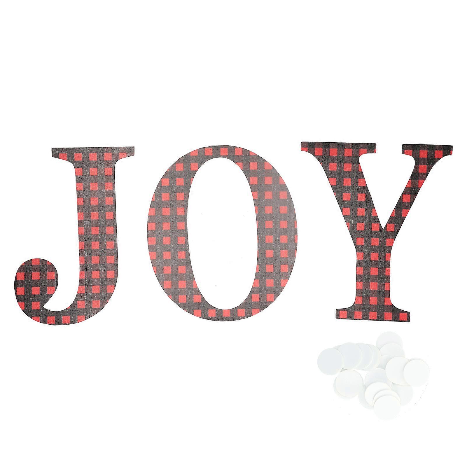 Joy Letter Sign Red Black Plaid Design Wooden Letter Ornaments For Front Door Christmas Home