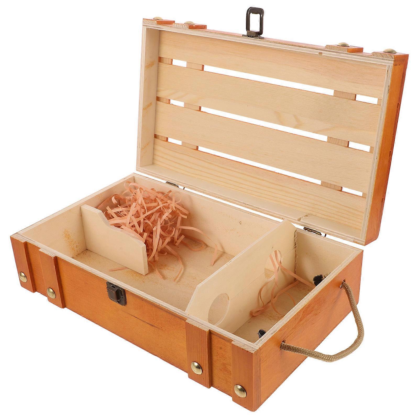Decorative Storage Case Wooden Wine Packing Box For Christmas Gifts Retro Style Portable Handle 35.00X21.00X11.00CM 1Pcs