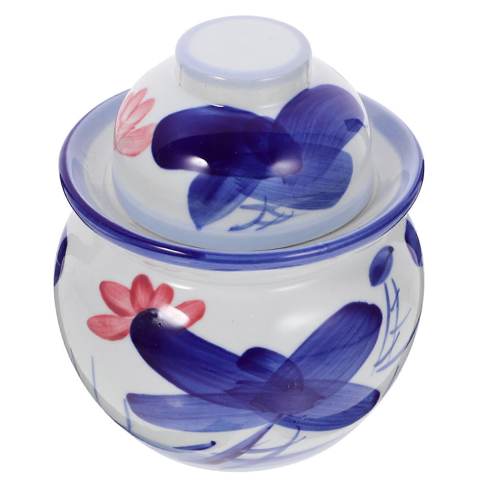 Ceramic Can Traditional Chinese Porcelain Pickle Jar Home Use Sealed Storage 17x15cm 1Pack