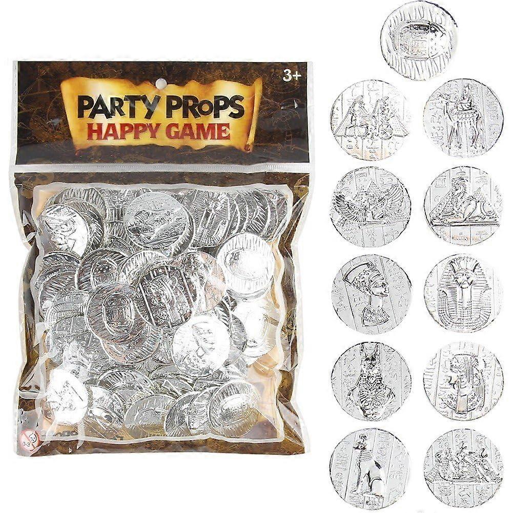 Pirate Coins for Kids, EgyptianThemed Coin Set, Treasure Hunt, Party Props Silver