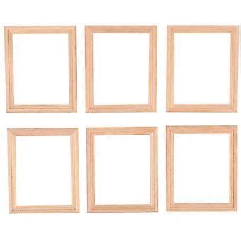 Doll House Items 6 Pcs Hanging Picture Frame Solid Color Wooden Decorations for Doll House Living Room Decor 7.60X6.10X0.10CM