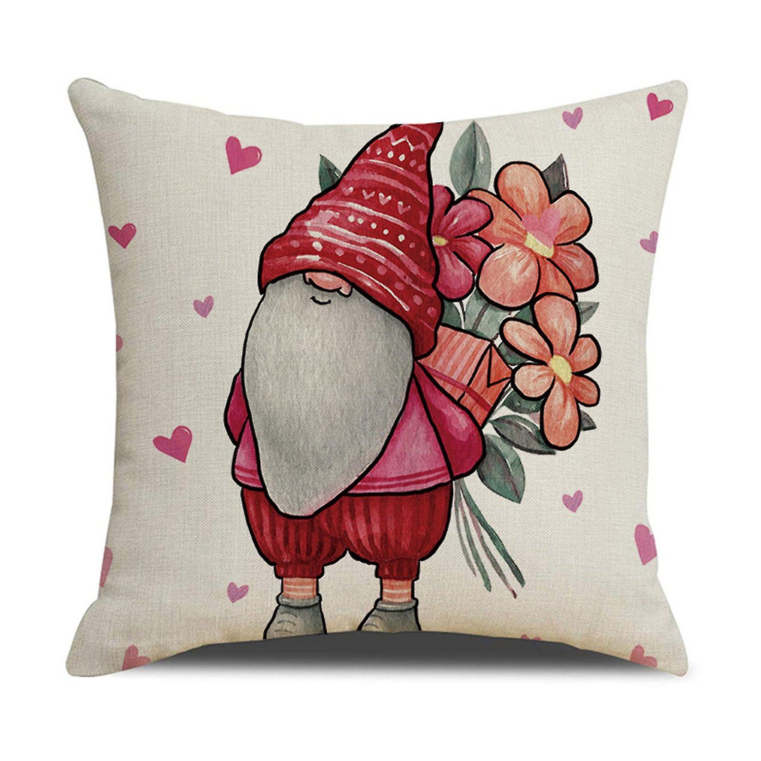 Valentine's Day Pillowcase Cute Love Heart Gnome Doll Pattern Sofa Cushion Cover Bedroom Car Square