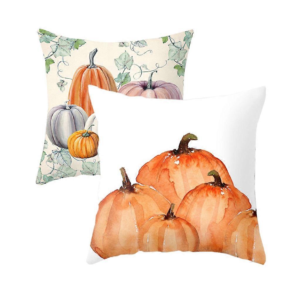 Thanksgiving Pumpkin Series Throw Pillow Case 2Pcs Decorative Cushion Protector For Home Sofa And Chair In Assorted Color 45X45Cm Wear-Resistant