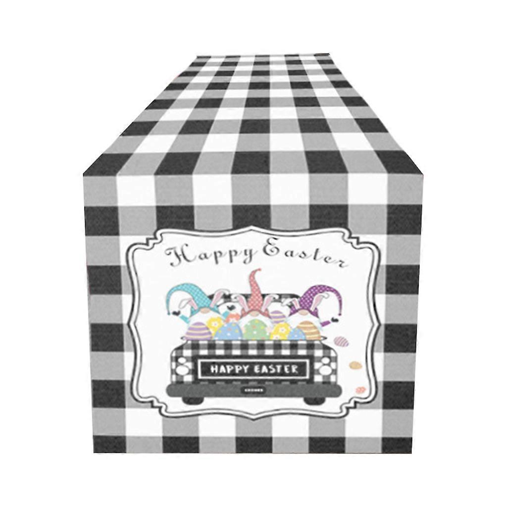 Easter Cartoon Truck Bunny Gnome Eggs Printed Table Runner Rectangle Tablecloth Cover for Holiday Party Farmhouse Kitchen Dinner Decoration Supplies