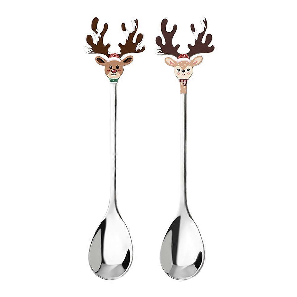 Festive Christmas Reindeer Spoons for Coffee Tea Honey and Desserts 304 Stainless Steel Assorted Color 2pcs