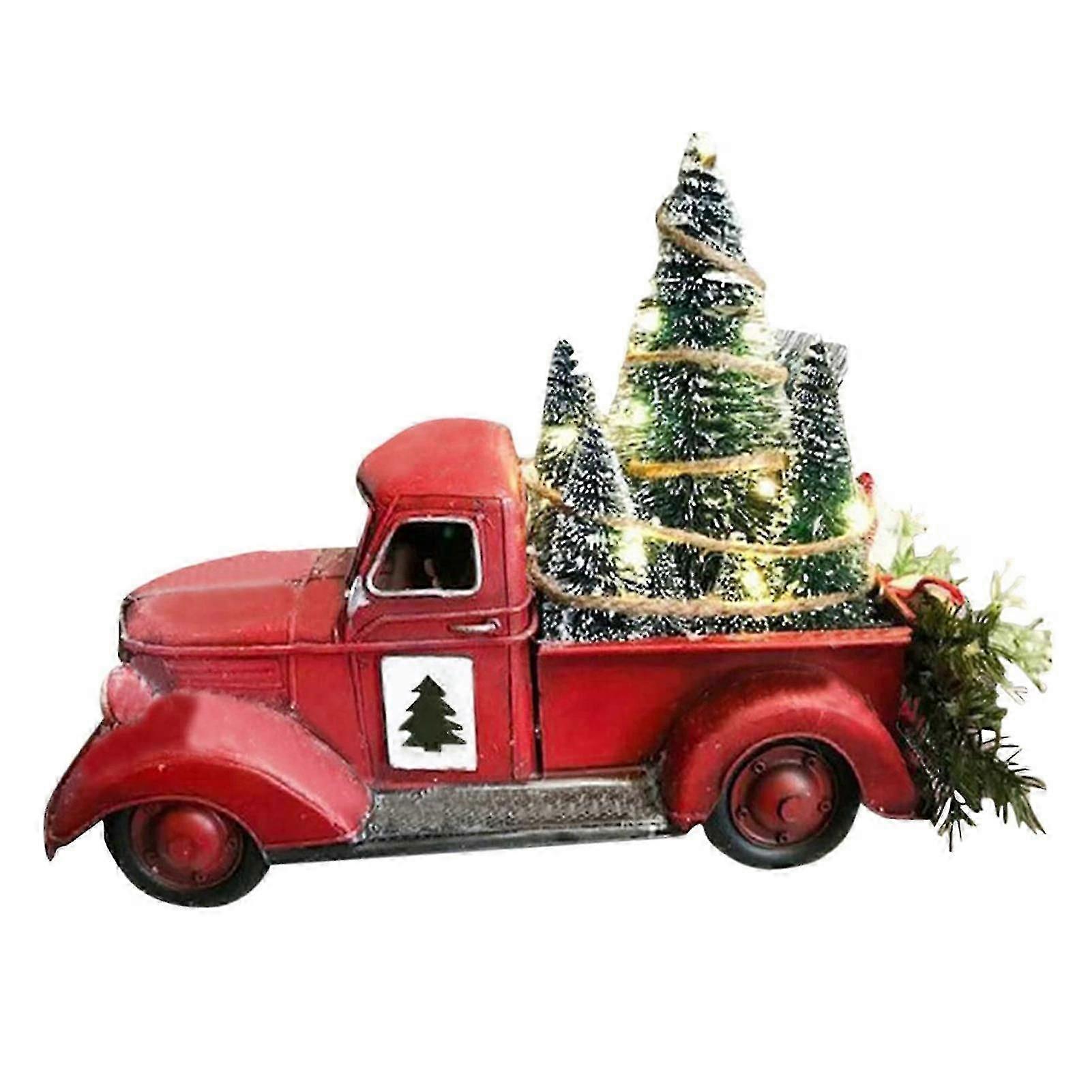 Christmas Red Farm Truck Ornament Vintage Resin Classic Pickup Red Truck For Christmas Party Decoration-YuJia