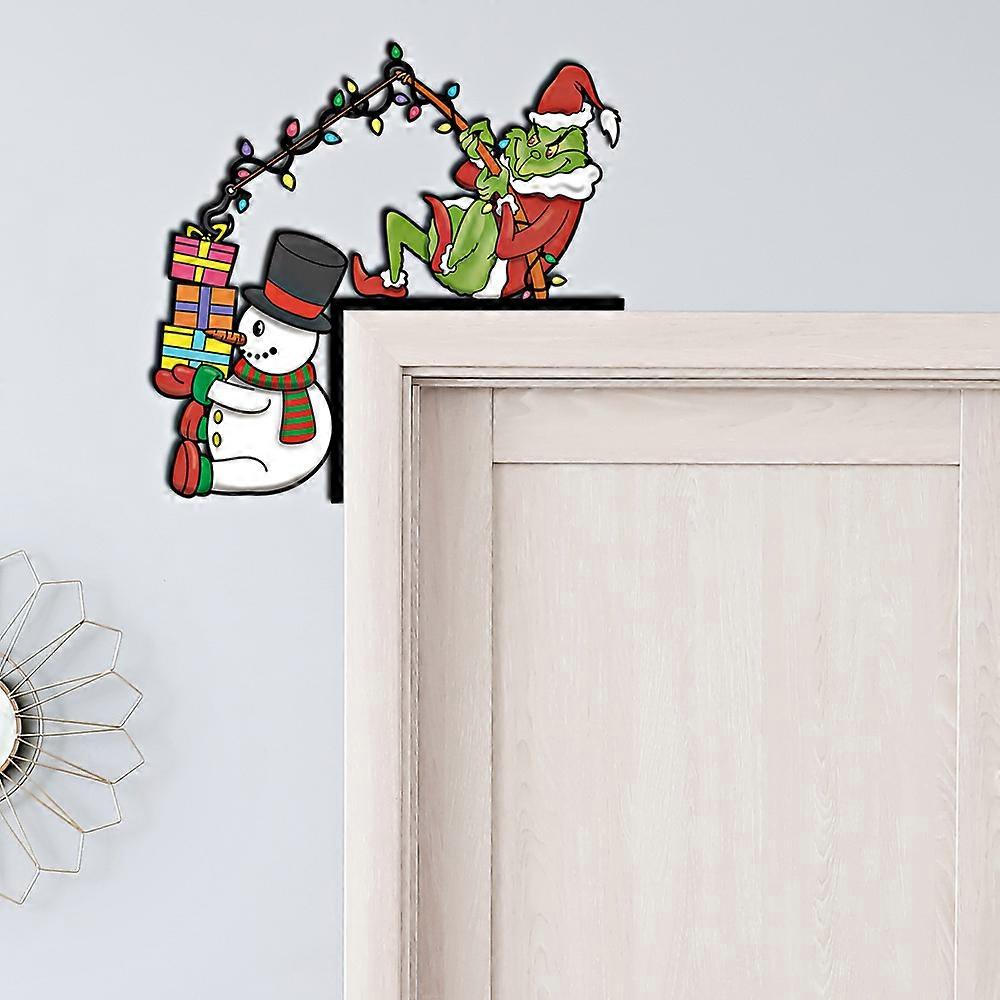 Christmas Wood Door Corner Decoration, Santa Elf Grinch Top Door Frame Door Topper