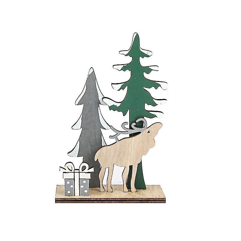 Christmas Tabletop Decoration Wooden Santa Claus Figurine Elk Xmas Tree Puzzle Wood Ornament For Winter Xmas Holiday Showcase Fireplace Decor 2pcsmixe