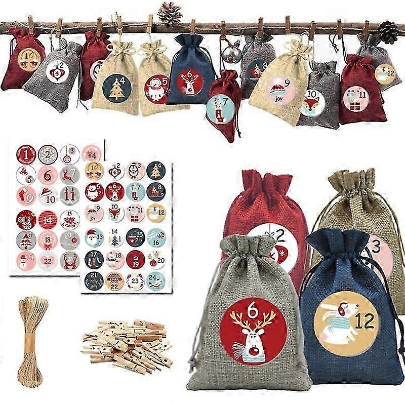Christmas Advent Calendar Gift Bag Set for DIY Filling Fabric Bag Xmas Gift Bags