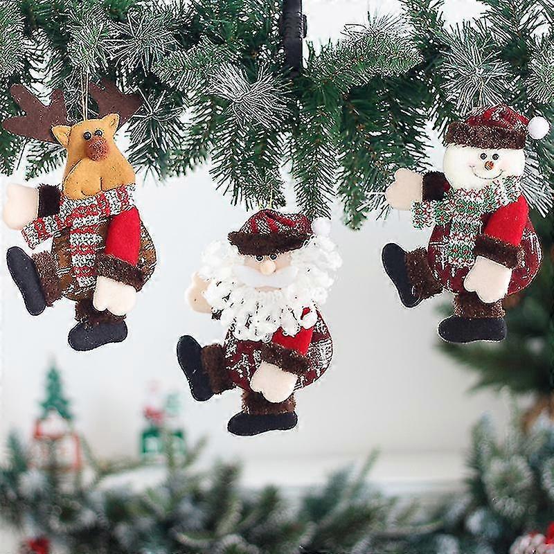 Christmas Plush Ornaments Short Leg Santa Clause Snowman Reindeer Doll Figurine Pendant For Xmas Tree Holiday Party Stocking Stuffer Decor3pcsmixed Co