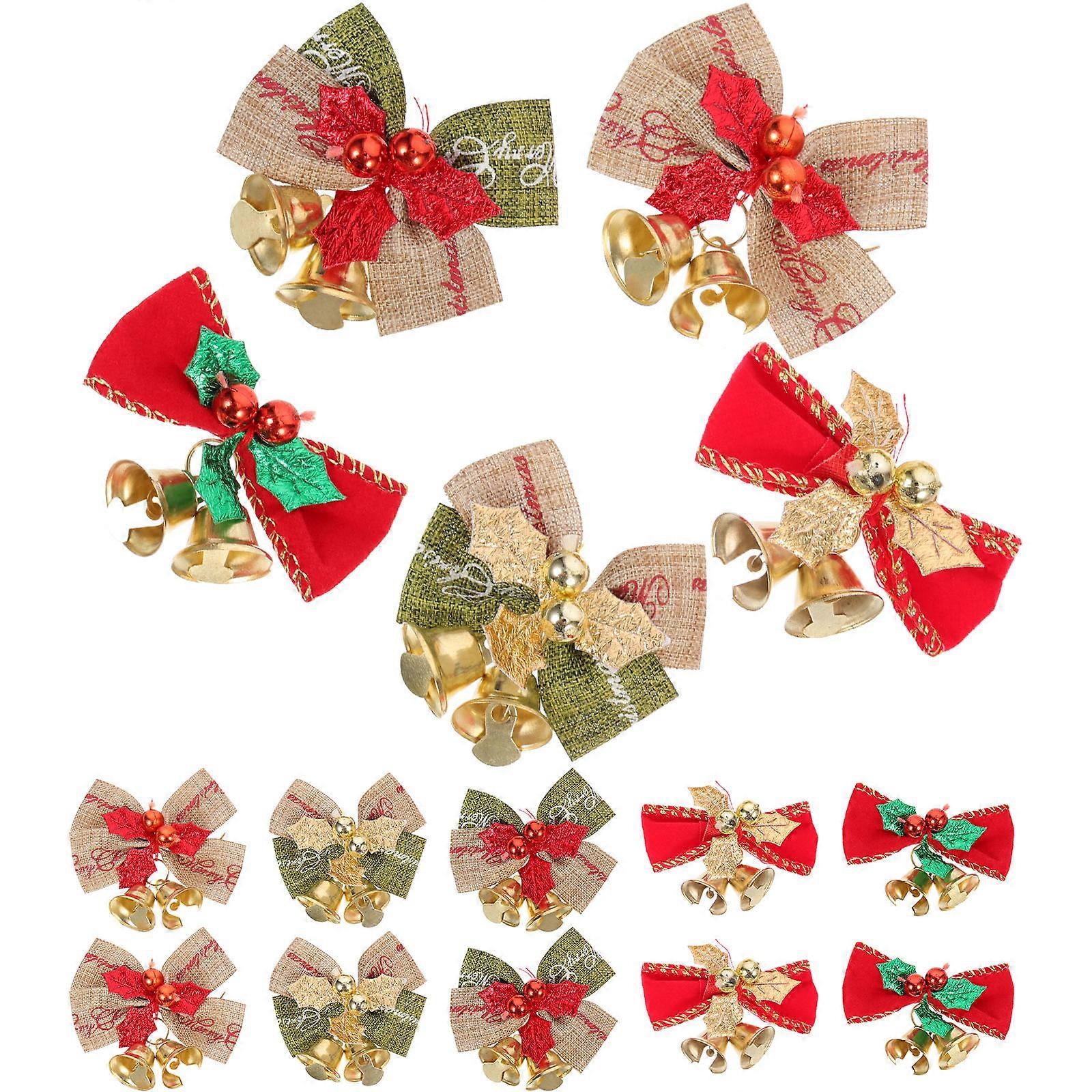 Xmas Bell Ornament Linen Bowknot Bell Ornaments for DIY Crafts 100Pcs